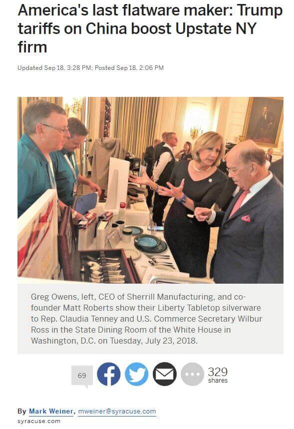 WASHINGTON — President Donald Trump’s new tariffs on Chinese imports could fuel record growth at a Central New York factory that has become America’s last maker of stainless steel flatware, the company’s co-founder said Tuesday.