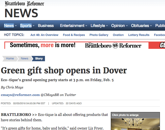 Green Gift Shop Opens in Dover