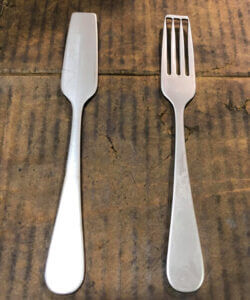 On the left, is a fork before going through the Dial Tine Machine and the right is after the Dial Tine process.